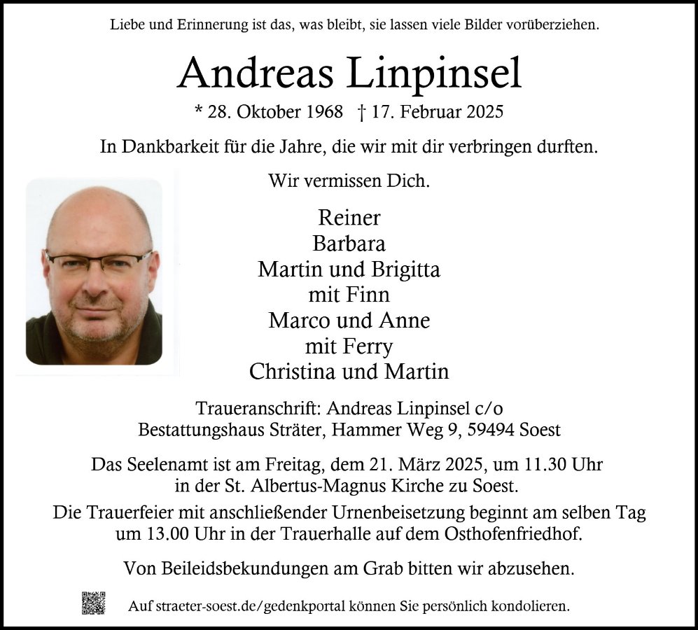 Andreas Linpinselgestorben am 17. Februar 2025